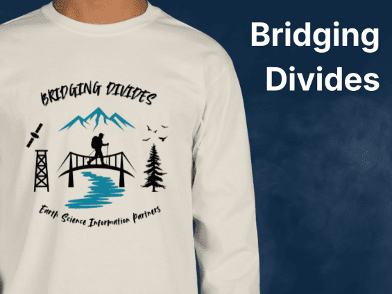 This year, we are offering two different designs in a few different styles. We have a “Bridging Divides” shirt for the 2026 ESIP theme, plus a shirt inspired by one of the most popular movies of 2025. We hope you’ll like them! All funds will directly support ESIP activities.