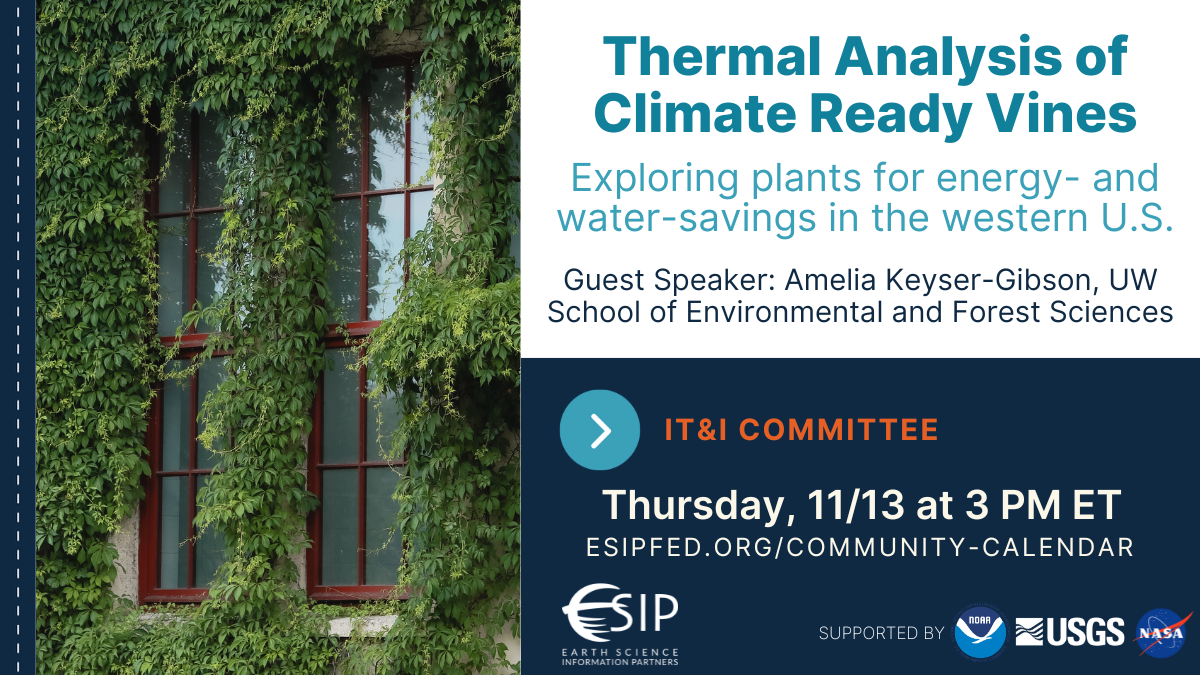 This month: Join Amelia Keyser-Gibson, UW School of Environmental and Forest Sciences, to hear her talk, “Thermal Analysis of Climate Ready Vines.”