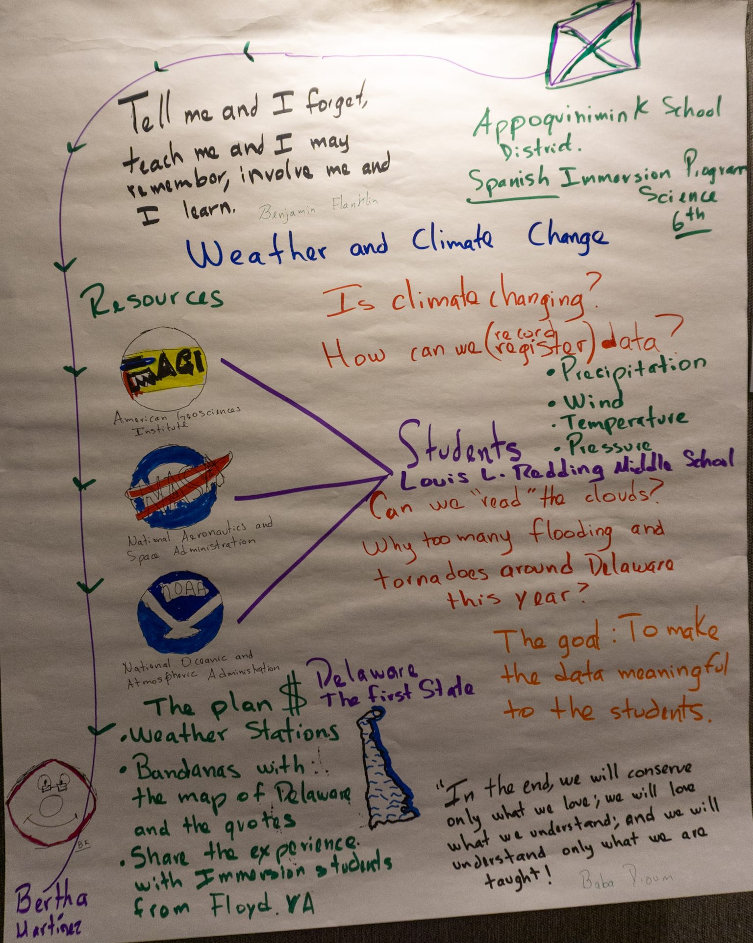 Middle school students will learn how to really look at their home area. They will see how things change such as wind, rain, how warm or cold the air is, and other things. Then, they will try to find what happens a lot with the air and rain and such. Kids like to ask questions, and maybe among these students are future big thinkers. What makes this idea special is that it will be carried out by students in their beautiful home state (Delaware), and will also be shared by another school in the next state (Virginia).”